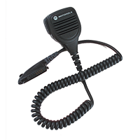| PMMN4038 Windporting Remote Speaker Microphone, IP57 Submersible These Remote Speaker Microphones have a 6-foot coiled cord assembly, swivel clip and quick disconnect latch.The windporting feature dramatically lessens background noise from high winds and other severe weather conditions. IP57 Submersible model tested at 1 meter for 30 minutes. |